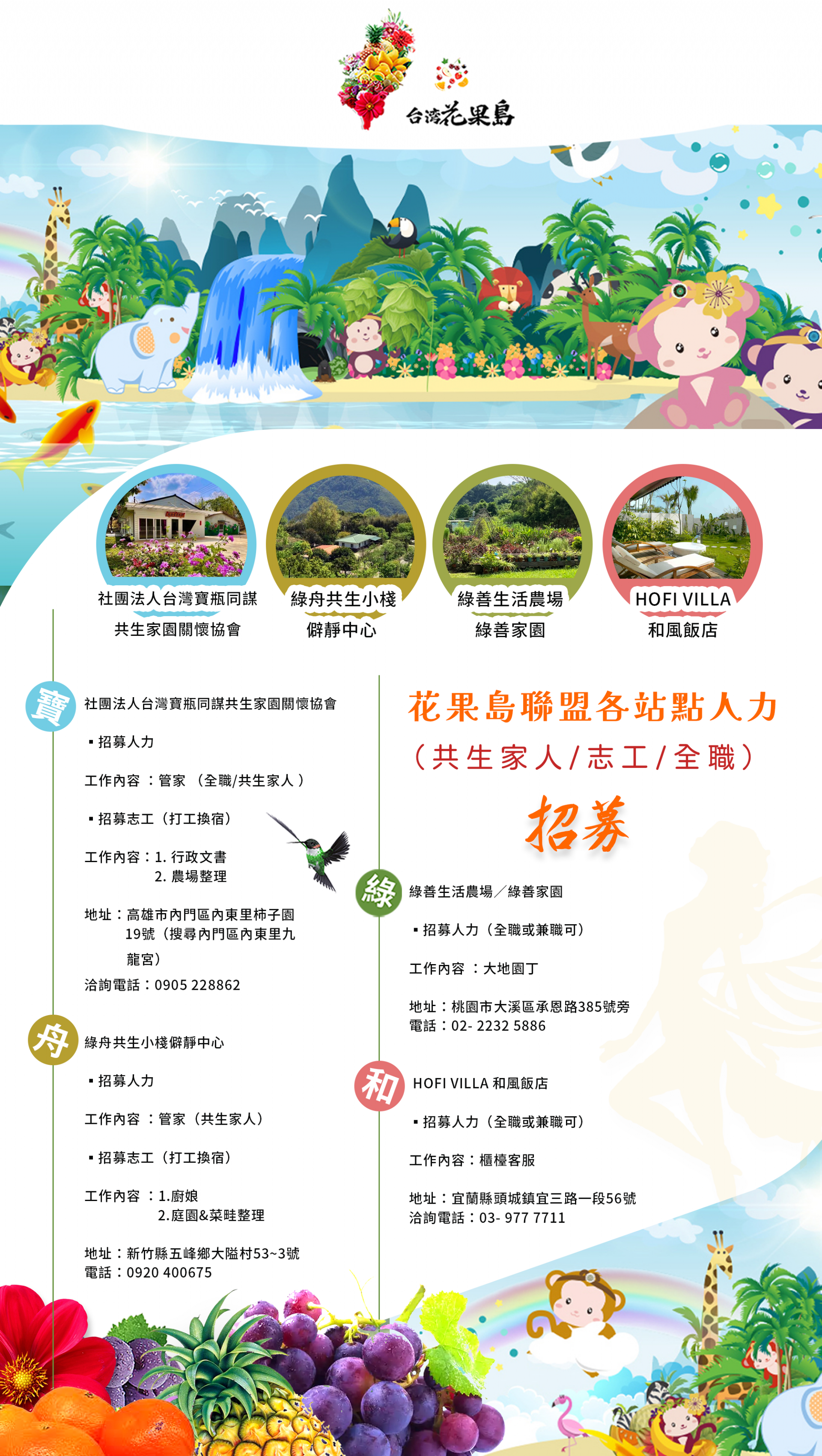 誠摯的歡迎您加入我們,成為花果島聯盟夥伴。 讓我們一起牽手,用愛串連花果島!讓世界看見台灣!